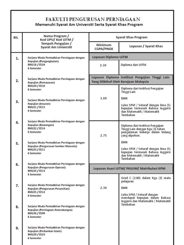 Syarat Kemasukan Sarjana Muda Pentadbiran Perniagaan Kewangan Uitm